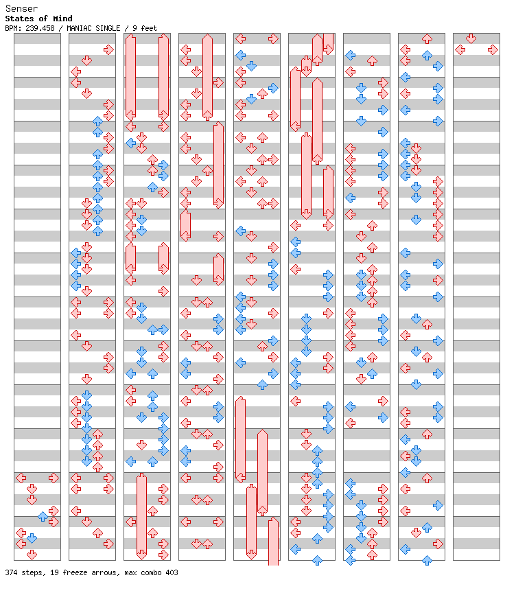 I’ve always been a huge fan of the demoscene. Some time in 1993 I discovered the work of a group called Future Crew in an AOL download area, and got to work making my 50 mhz computer turn out some amazing demonstrations of design. The first demo I ever downloaded, Second Reality, still amazes me every time I see it. Throughout the years, these deo programs have evolved. Different competitions have come and gone, and many groups have produced incredible examples of their creative mastery. One such group, headed by Skal, created a controversial demo called State of Mind. This fantastic piece caused a multitude of arguments because the demo was made with a popular band’s song as the soundtrack. Whereas most demoscene videos include custom music made by the musician of the group, Skal’s work was to be a music video for an already popular song. Senser’s “States of Mind”, a gritty and biting look into consumer mentality, was given a video that complemented its sharp attitude. The end result was wildly popular, despite the haze cast over the song’s original message by the controversy surrounding the demo. My exploration into the video background aspect of step-fu began with this song, as I edited down Skal’s demo along with the song to fit DDR’s standard length. The result is the only song in the Plaguemix Series thus far to include a full-motion background video! |